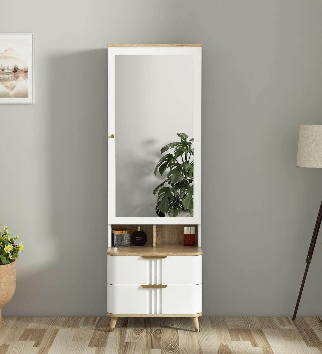 Built to last, the dresser features a robust 18 mm MDF shutter and mirror panel (18 & 3 mm MDF) along with 18 mm MDF side planks for long-term durability. Its minimalist design and glossy surface make it a perfect fit for contemporary bedrooms elevating the aesthetics of your space while keeping everything you need within easy reach.