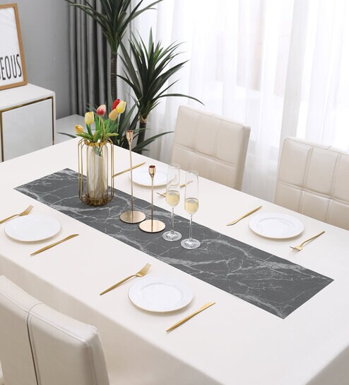 30x135 cm dining table runner. Can also be used as centre table runner or side table runnerQuality Material - This dining table runner is made using blend of 70% PVC and 30% Polyester.Easy to Clean - Simply wash this center table runner with tap water or sponge wipe and it will be clean.Size - This dinner table runner measures 30x135 cm in size.Package Contents - 1 table runner for dining table / centre Table.