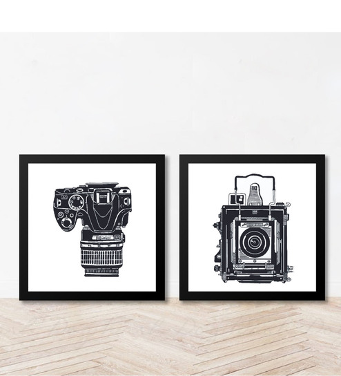 Camera White Paper & Wood Framed Art Print Set of 2