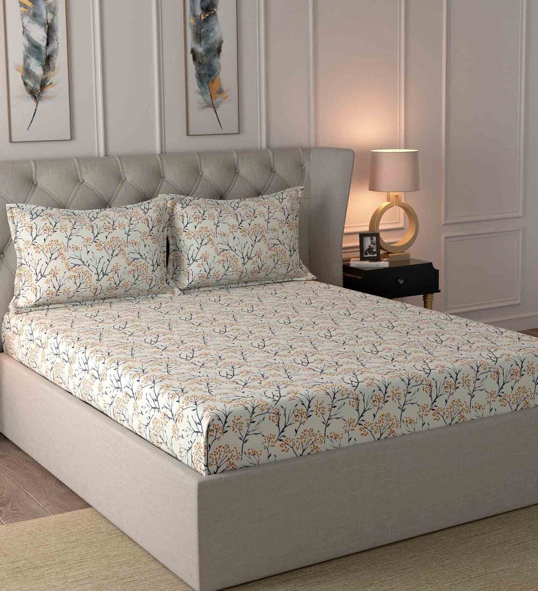 Orange Floral 210 TC Cotton 1 Double Bedsheet with 2 Pillow Covers