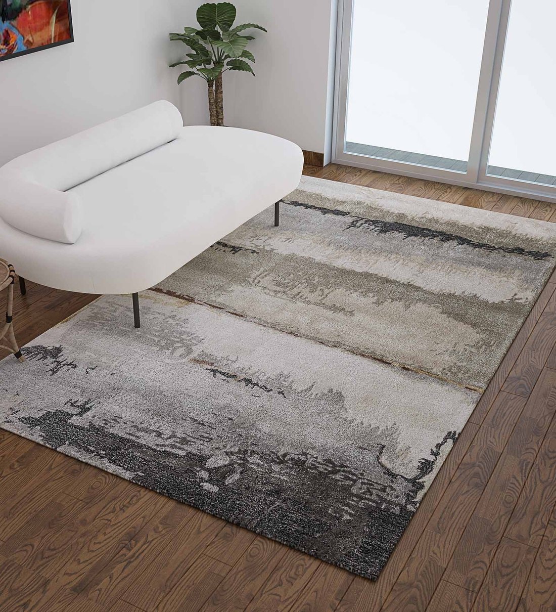 Grey Abstract Wool And Viscose 5 ft x 7 ft Hand Tufted Carpet