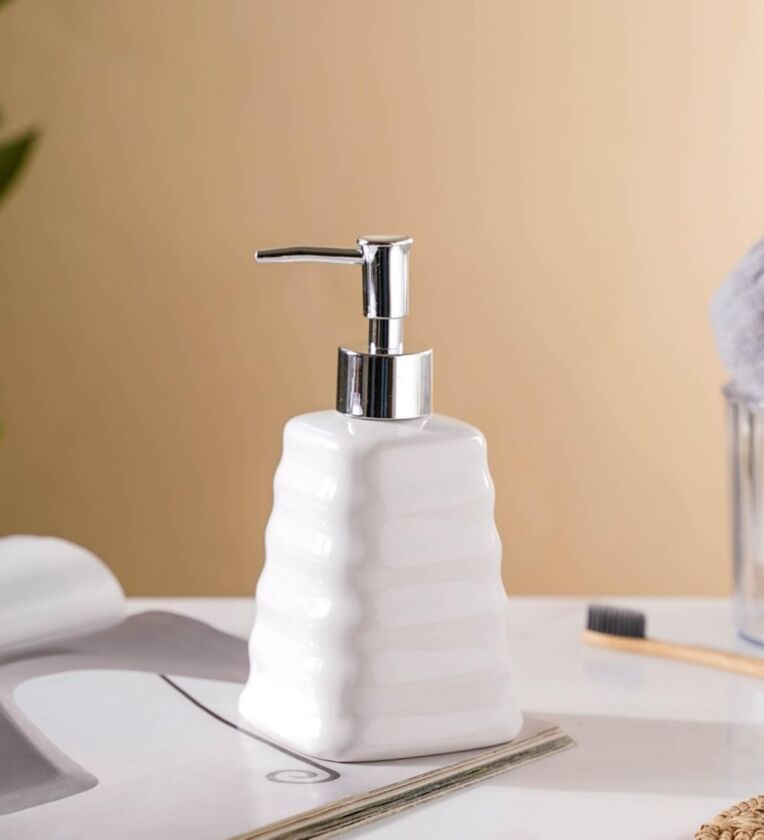 The ceramic soap pump or dispenser has a minimalist look with an elegant design. The stylish ceramic soap dispenser is great for storing all types of cleaning liquids and detergents in the bathroom, kitchen, or toilet. The high-grade ceramic dispenser with the nozzle pumps smoothly to deliver the perfect amount of product every time. The dispenser can add a luxurious look to your bathroom interiors and is a great gift for someone who loves to decorate their home. Features: -Premium quality -Glossy finish -Exquisite design -Stylish & versatile -Easy to maintain
