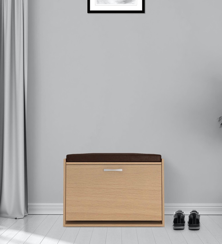 Acacia Pull-down Shoe Rack with Cushioned Seating in Canadian Maple Finish