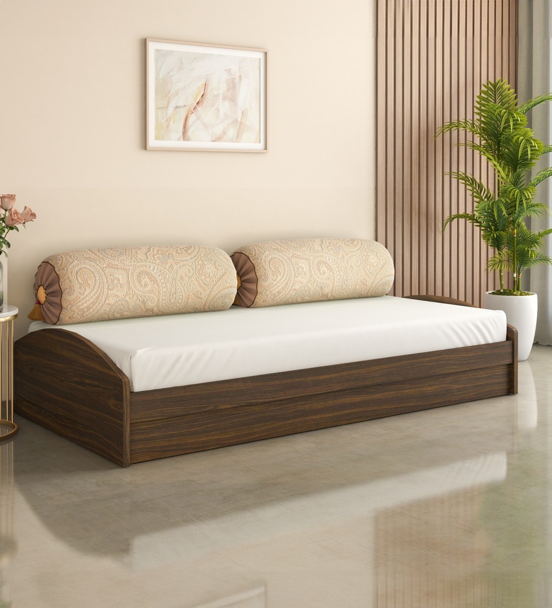 Addison Single Size Bed in Classic Walnut Finish with Box Storage