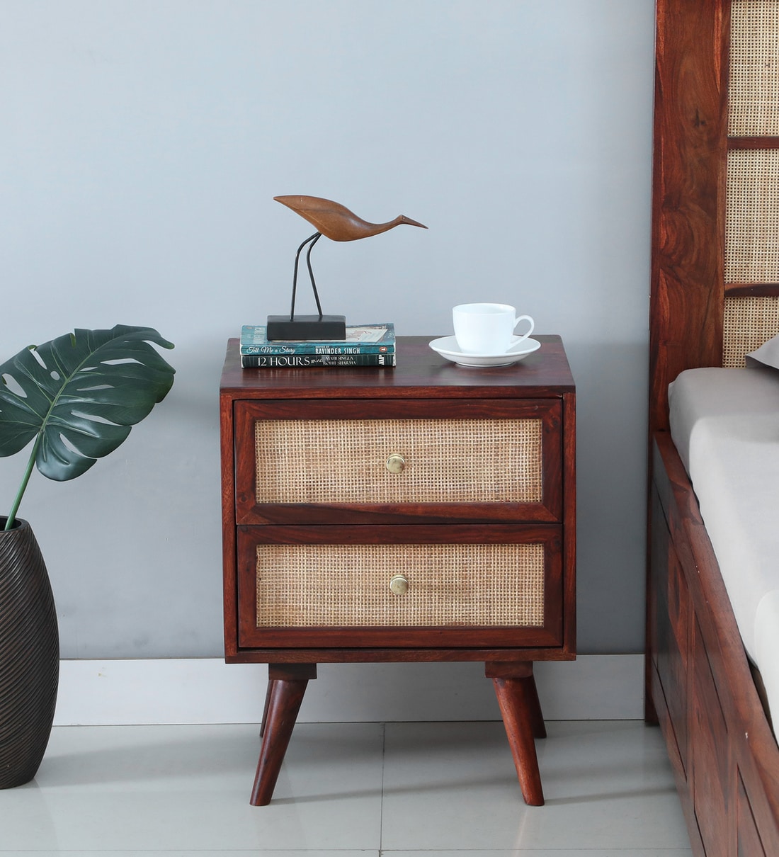 Adorf Sheesham Wood Two Drawer Bedside Table In Scratch Resistant Honey Oak Finish
