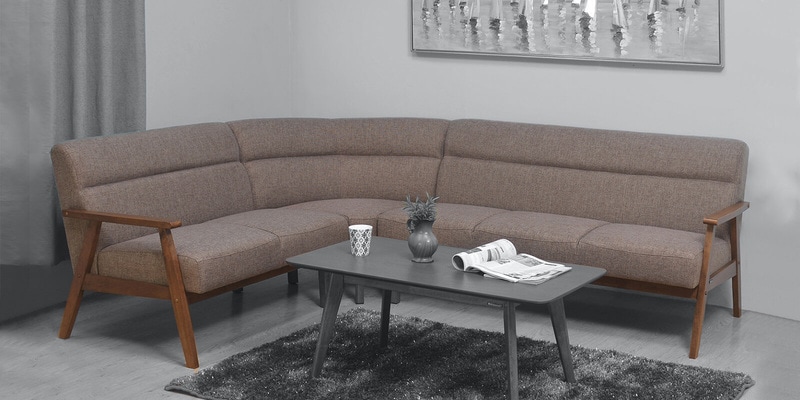 Sofa made of Solid Rubber wood. Back and seat made of foam with fabric upholstery.