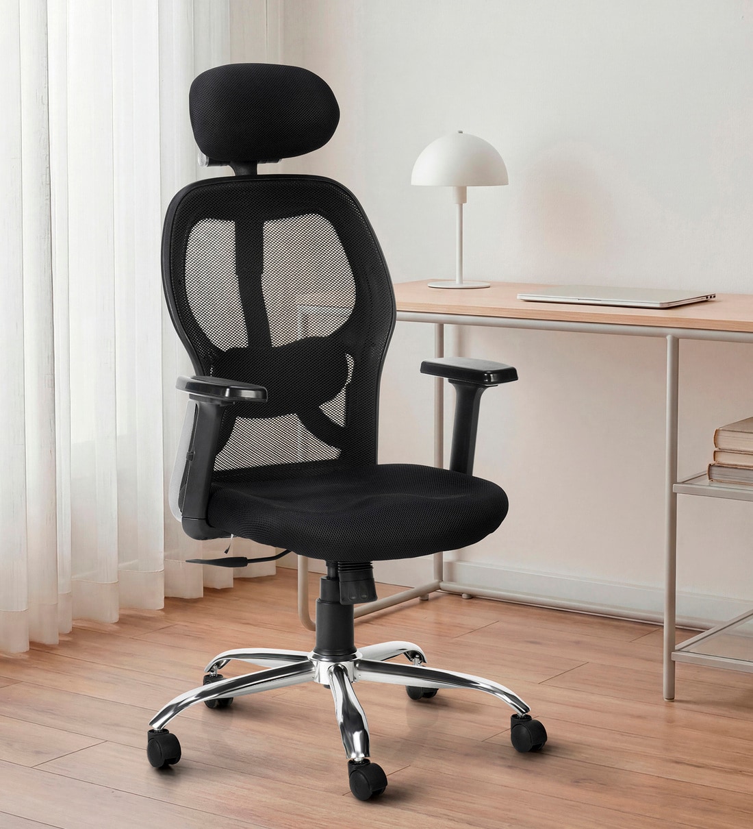 Navya Office Chair with Breathable Mesh and Adjustable Armrests in Black