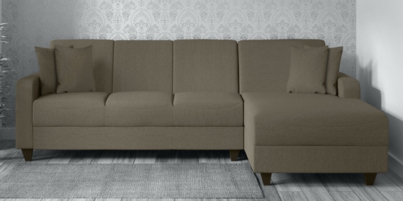 Alba Fabric LHS Sectional Sofa (3 + Lounger) in Sandy Brown Colour