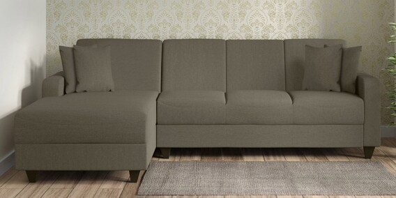 Alba Fabric RHS Sectional Sofa (3 + Lounger) in Sandy Brown Colour