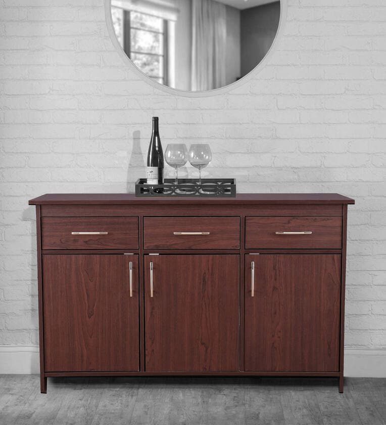 The Albert three door cabinet with modern steel finish door and drawer handles, adds a simple and modern touch to your best of storage and decor furniture