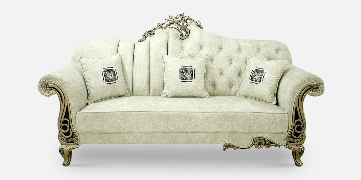 Frame Material : Teakwood; Leg : Solid Wood; Upholstery Material : Fabric (Suede); Foam : PU Foam (Multi-Density); Suspension System : Elastic Belts + Zigzag Spring