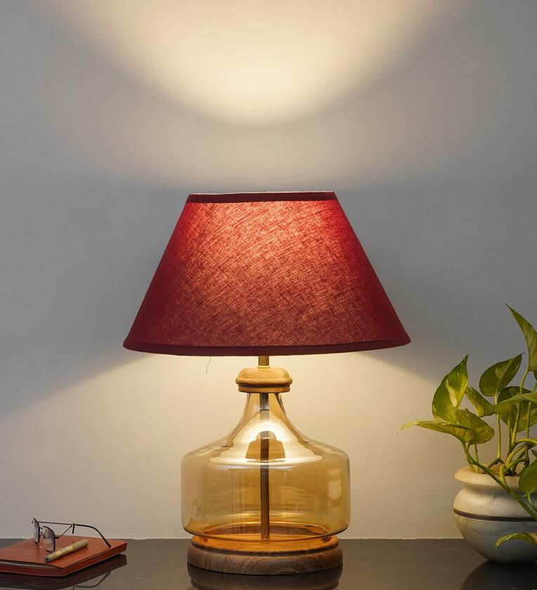 Elevate your home d cor with the sophisticated charm of the Alexandro Table Lamp. Featuring a unique blend of amber lustere glass and rich natural wood, this lamp brings a warm, earthy elegance to any space. The maroon cotton shade adds a bold yet refined touch, casting a soft, ambient glow perfect for living rooms, bedrooms, or reading nooks. Crafted with attention to detail, the Alexandro lamp is both a functional light source and a striking decorative piece. Whether placed on a side table, console, or bedside, it effortlessly enhances your interior with its timeless design and warm tones.