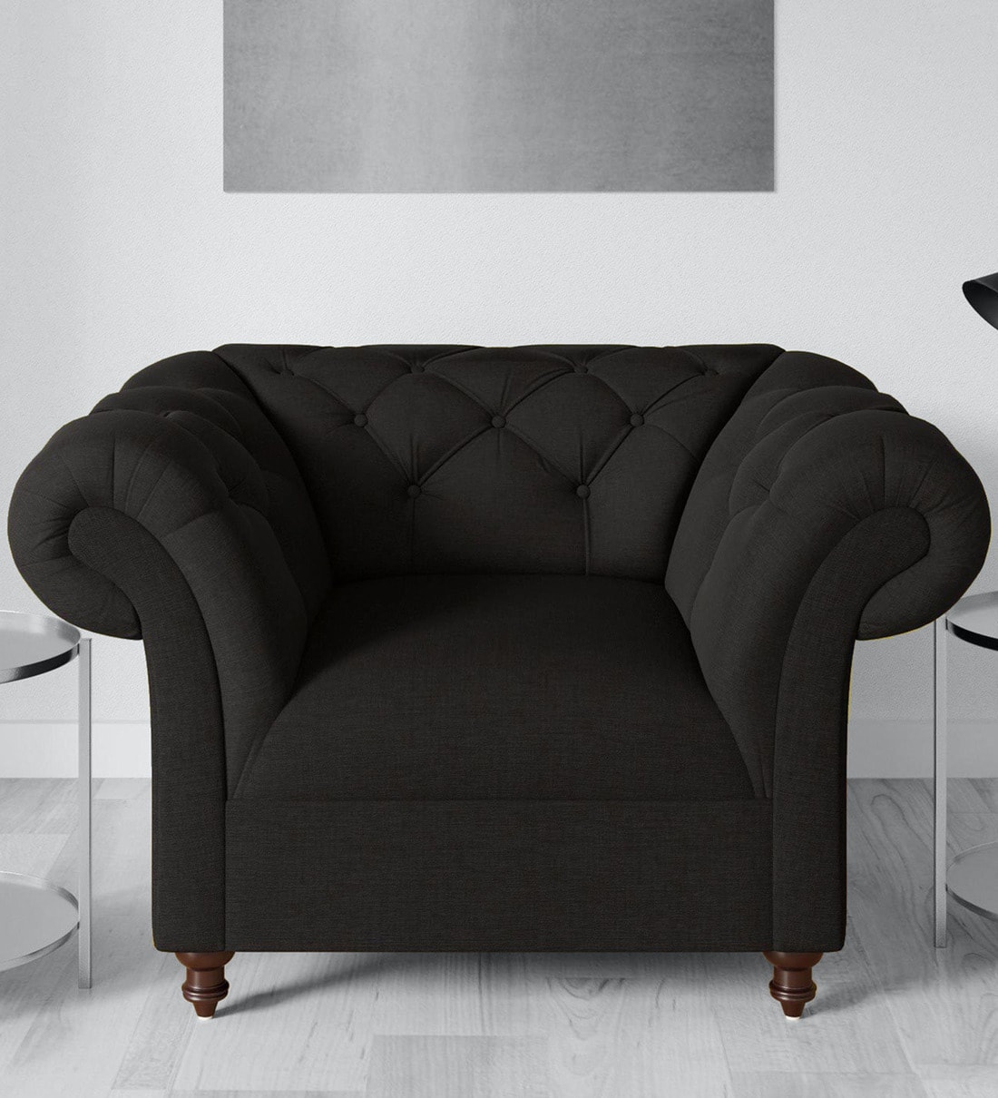 Allanton Fabric 1 Seater Sofa in Charcoal Grey Colour