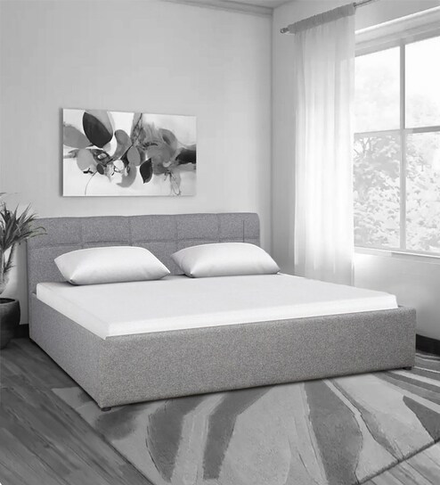 Allen Queen Size Upholstered Bed with Storage in Grey Colour