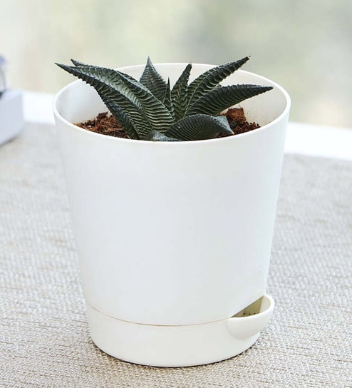 Disclaimer- Actual product might be varies against site image as this is Natural live plant so order cannot be cancel in such cases. Order cannot be cancel if Leaves of plant might get damage Intransit as this is live plant and it will grow again. Haworthia attenuata is also known as Zebra plant. The pattern on this plant is called wide zebra, in order to differentiate from other members of the plant family. Its a hardy plant from South Africa that can survive with minimal water. It grows in clusters and reaches up to 8 inches. The plant produces small flowers at the tip of a long stem, however not all plants flower and bloom indoors. A one stop-shop for home decor and furniture, Pepperfry sells a home product every 30 seconds.