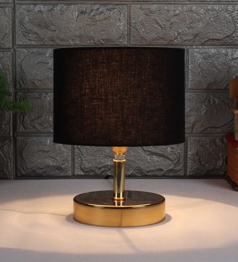 Amalia Black Cottan Fabric Shade Night Lamp With Metal Base