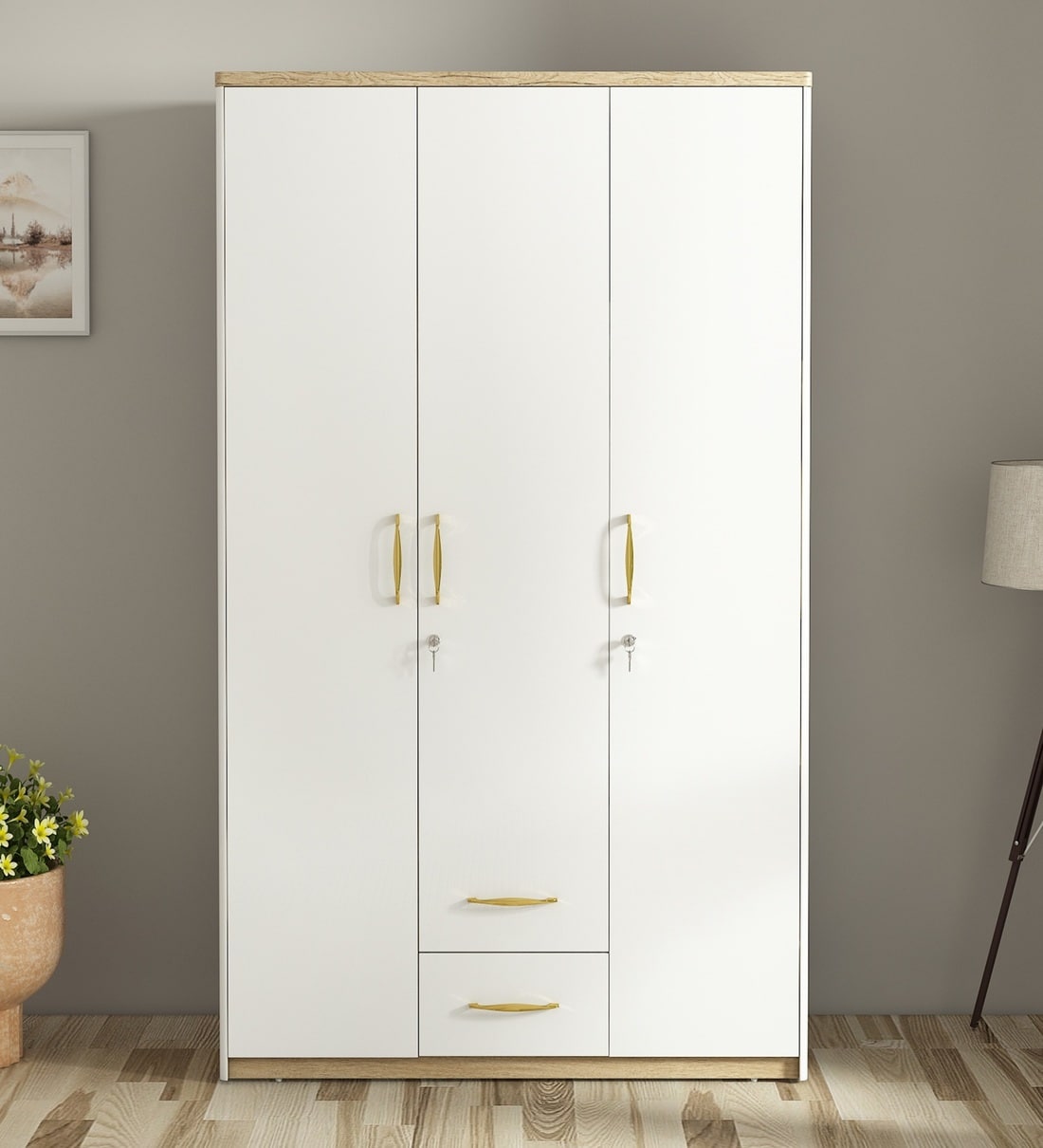 Ampara 3 Door Wardrobe With Locker & Drawer In High Gloss White Finish