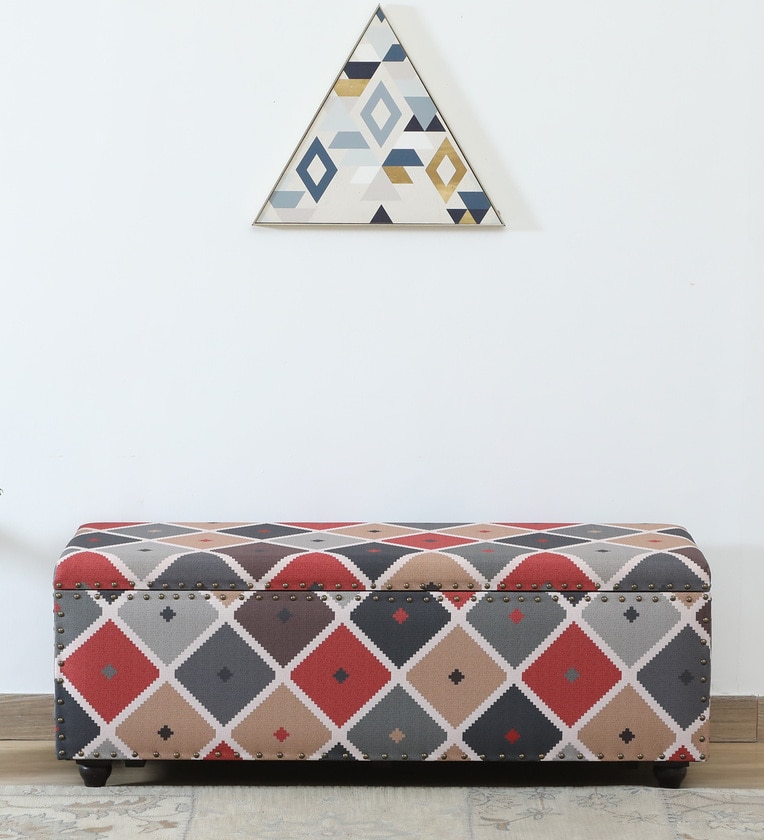 Amravan Fabric Linen Trunk In Multi-Colour