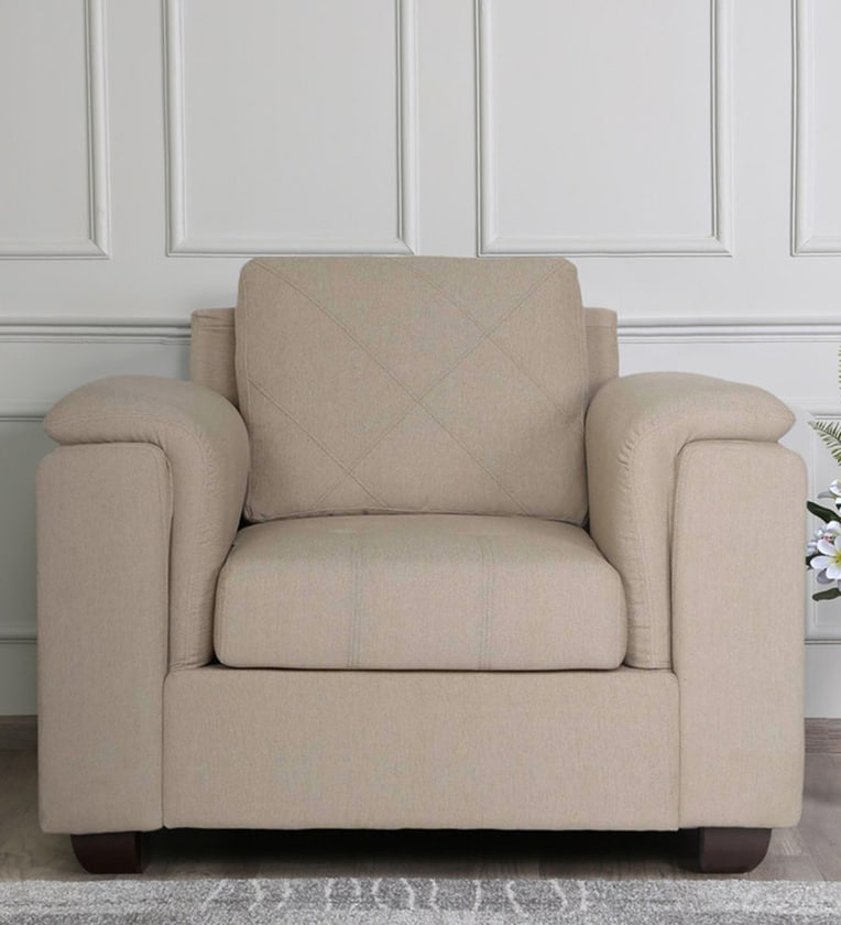 Andres Chenille Fabric 1 Seater Sofa In Beige Colour