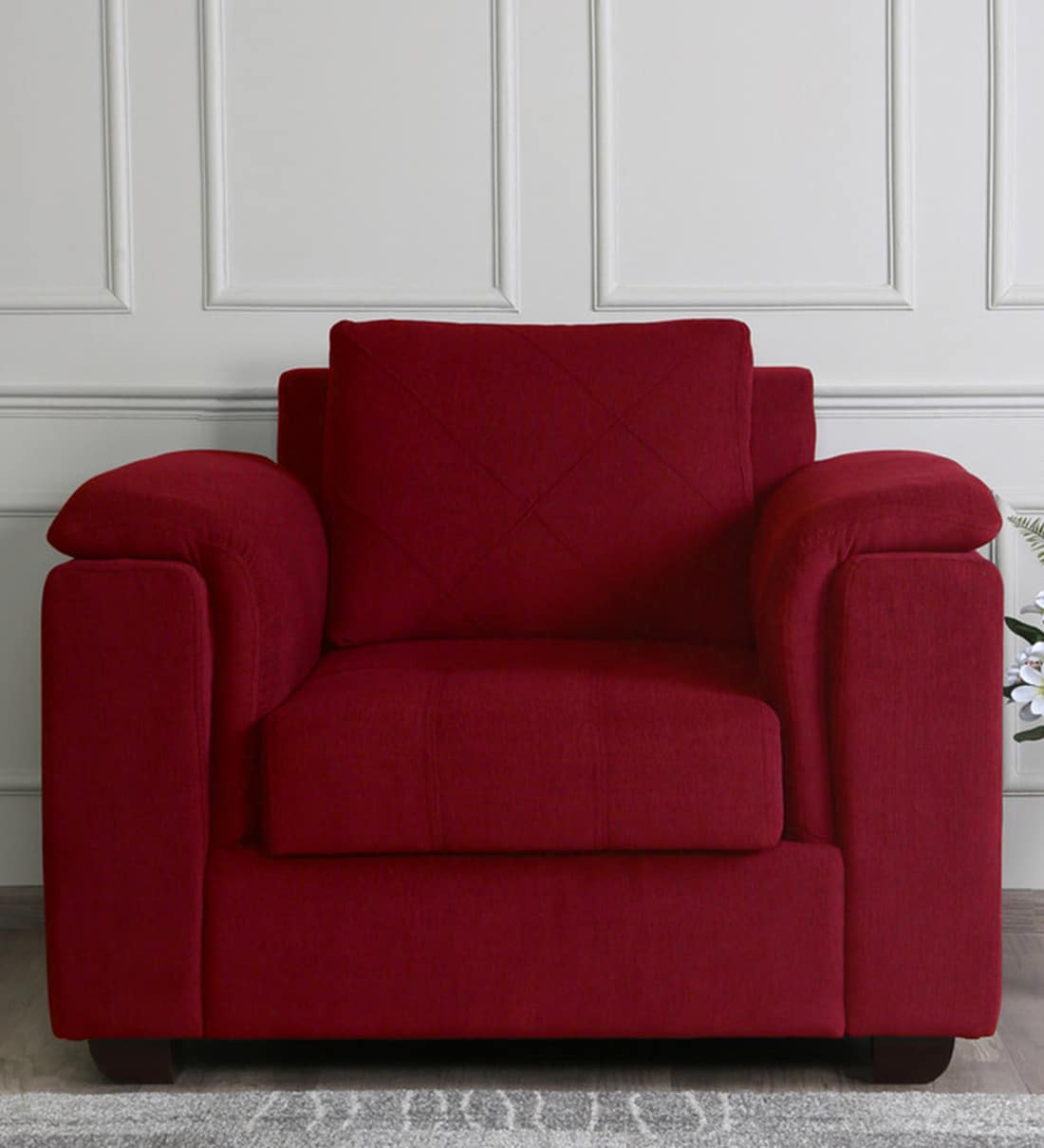 Andres Chenille Fabric 1 Seater Sofa In Garnet Red Colour