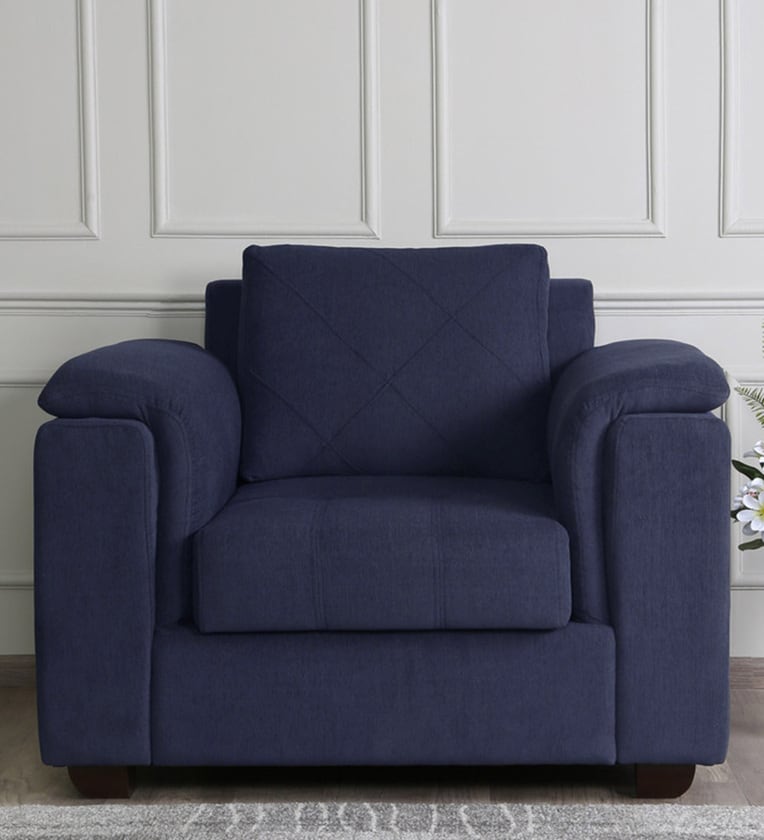 Andres Chenille Fabric 1 Seater Sofa In Navy Blue Colour