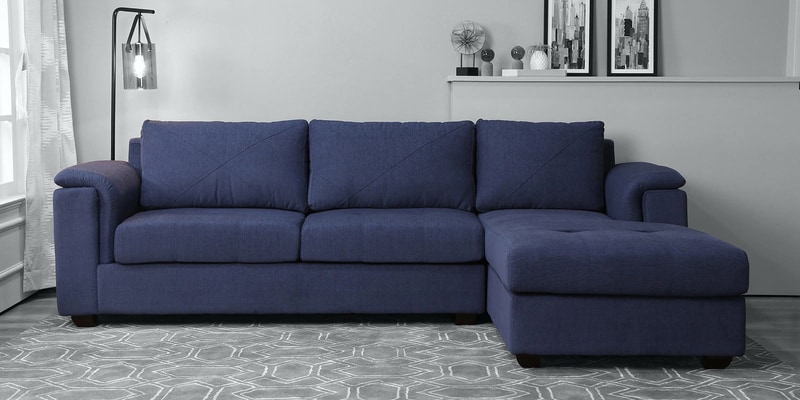 Andres Fabric LHS Sectional Sofa (3 + Lounger) In Navy Blue Colour