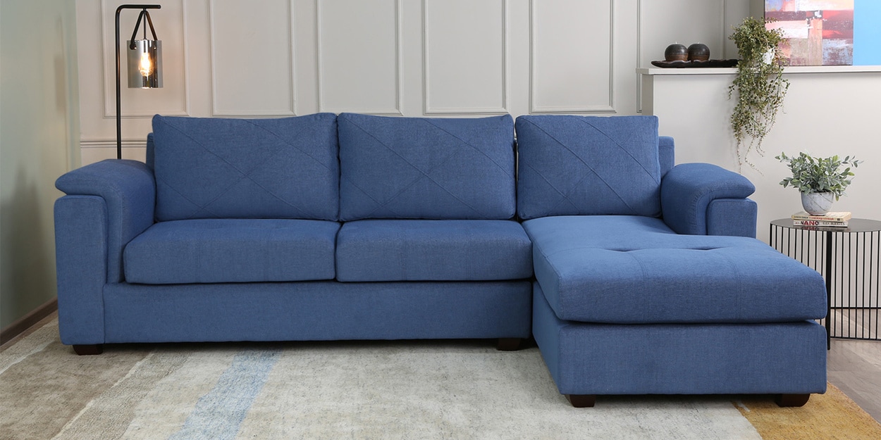 Andres Fabric LHS Sectional Sofa (3 + Lounger) In Denim Blue Colour