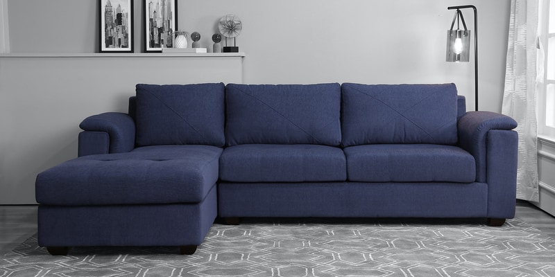 Andres Fabric RHS Sectional Sofa (3 + Lounger) in Navy Blue Colour
