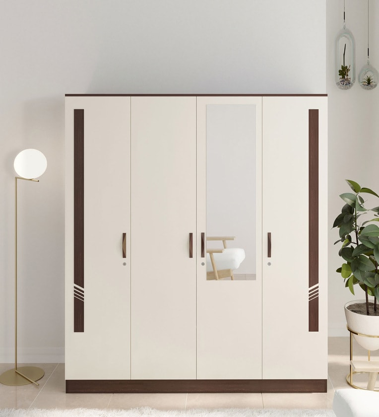Andrie 4 Door Wardrobe in Wenge & White Finish with Mirror