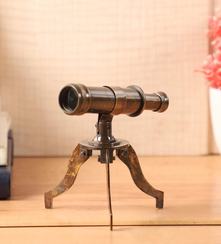 Antique Brass Mini Telescope Showpiece With Brass Tripod Stand