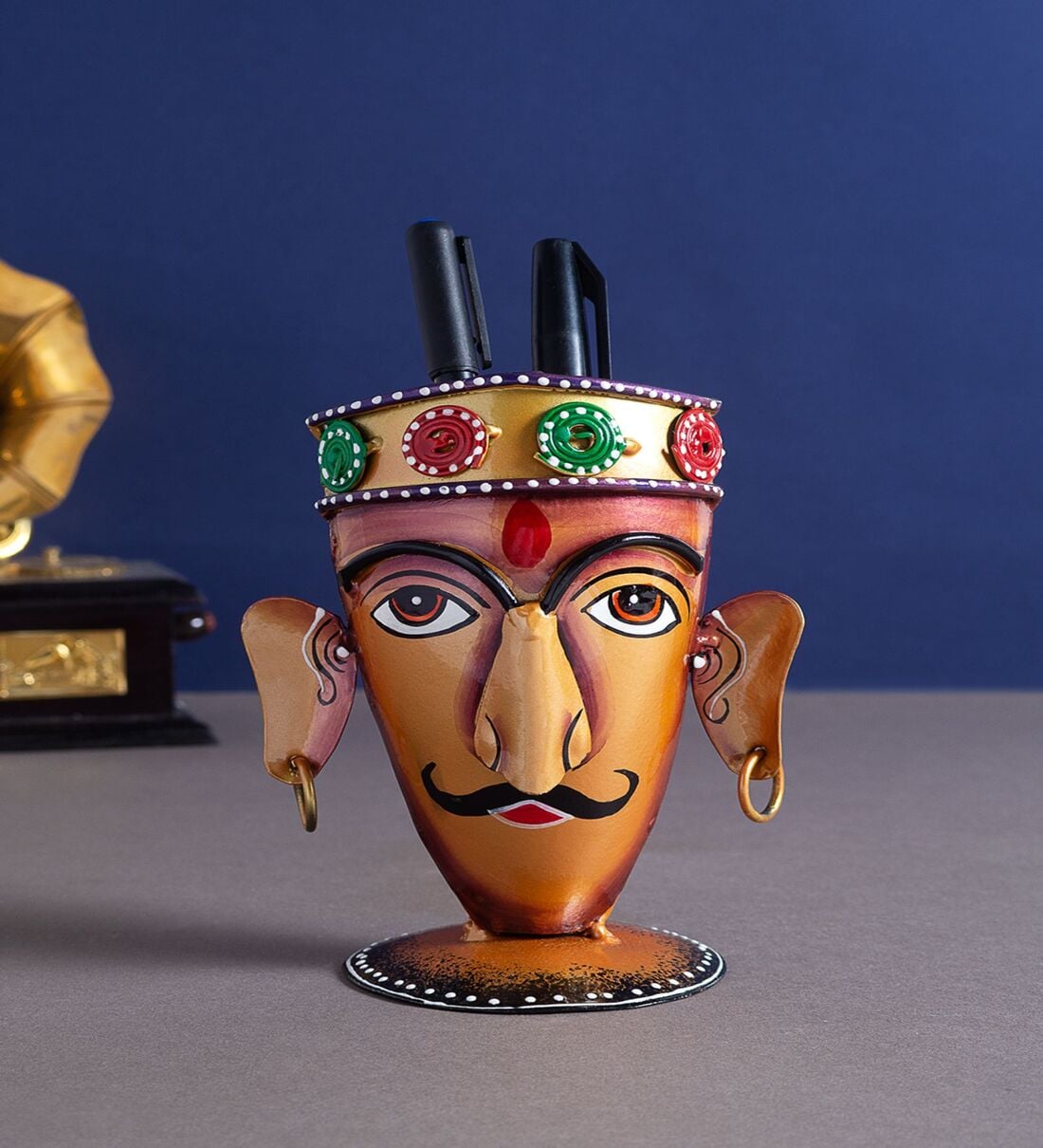 Antique Hand Multicolour Copper Iron Pen Stand