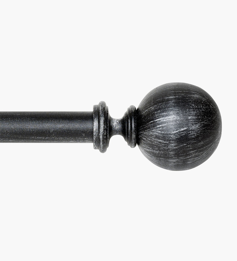 Antique Pewter Adjustable Curtain Rod with Brackets Iron Pipe with Ball Rustic Silver Finials (25MM Diameter)