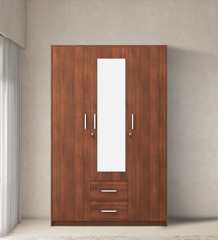 Kosmo Apex 3 Door Wardrobe in Walnut Finish with Mirror & Drawers