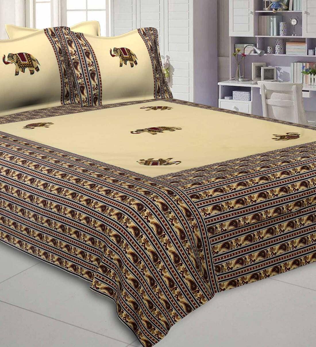 Cream Jaipuri Hand Made Embroidery Patch Work 240 TC Cotton 1 Double Bedsheet with 2 Pillow Covers