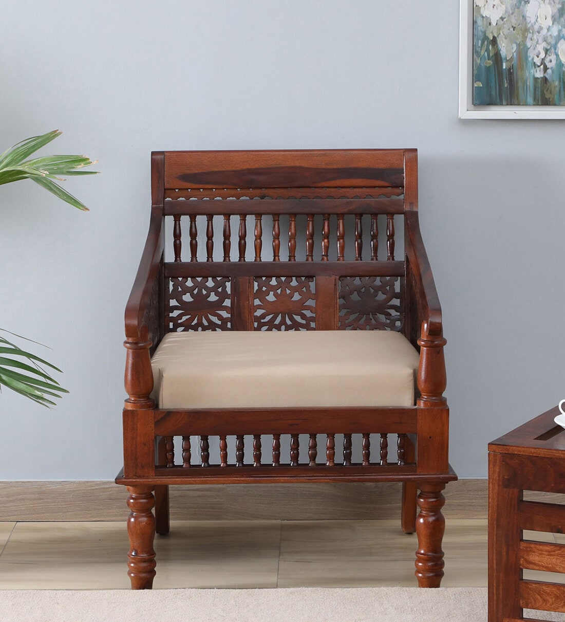 Aramika Sheesham Wood 1 Seater Sofa In Honey Oak Finish