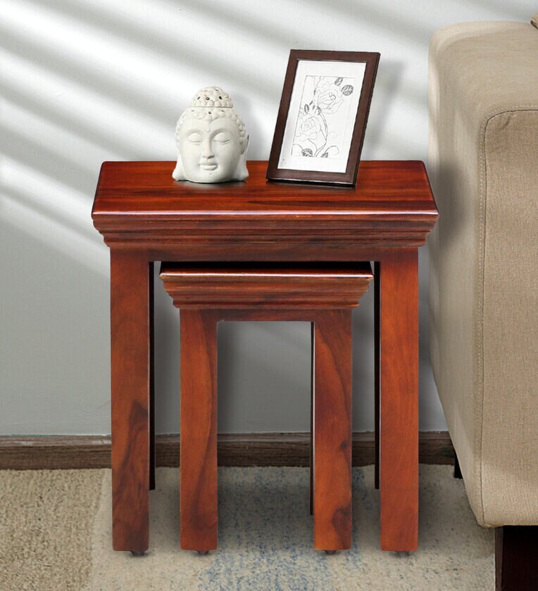 Aramika Sheesham Wood Nest Of Tables In Honey Oak Finish