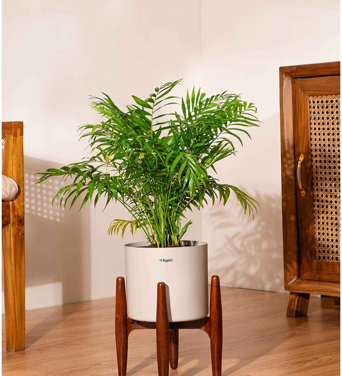 1 Areca Palm live plant with Zen 8 inch self watering metal planter