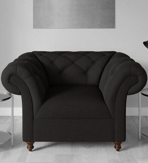 Areia Fabric 1 Seater Sofa In Charcoal Grey Colour