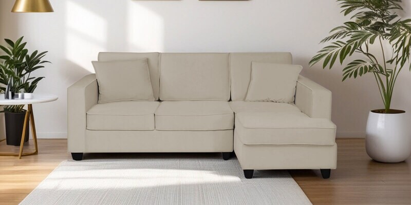 Aristocrat Velvet LHS Sectional Sofa In Camel Beige Finish