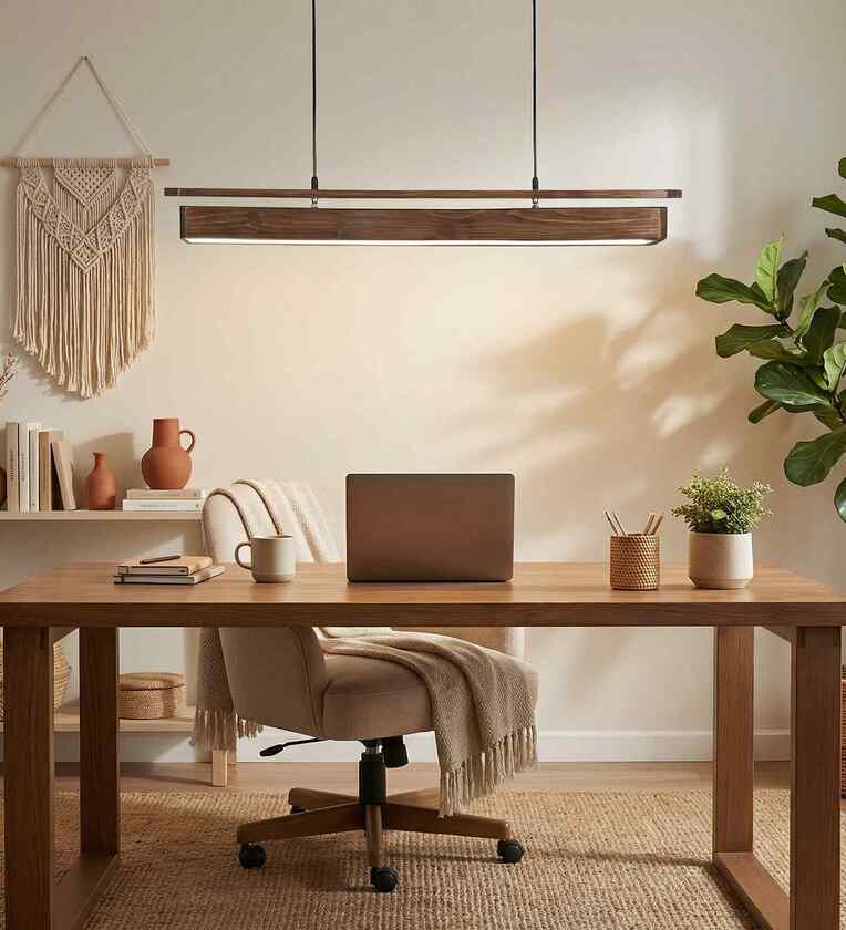 ArtDeco 36 Brown Solid Wood Linear LED Hanging Light