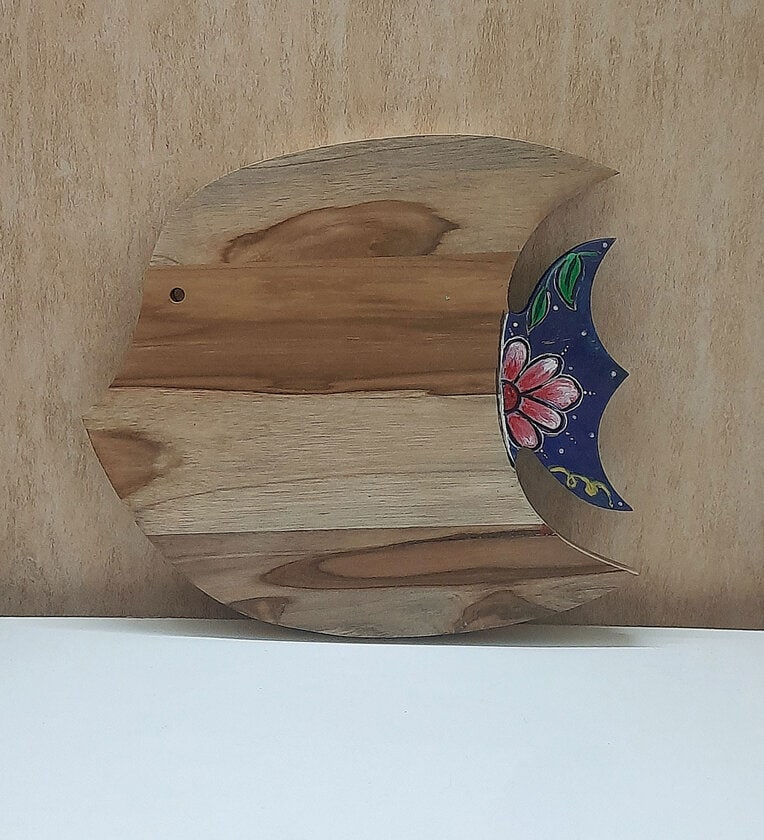 Artistic shape handmade Natural Brown Handpainted Wood Chopping Board
