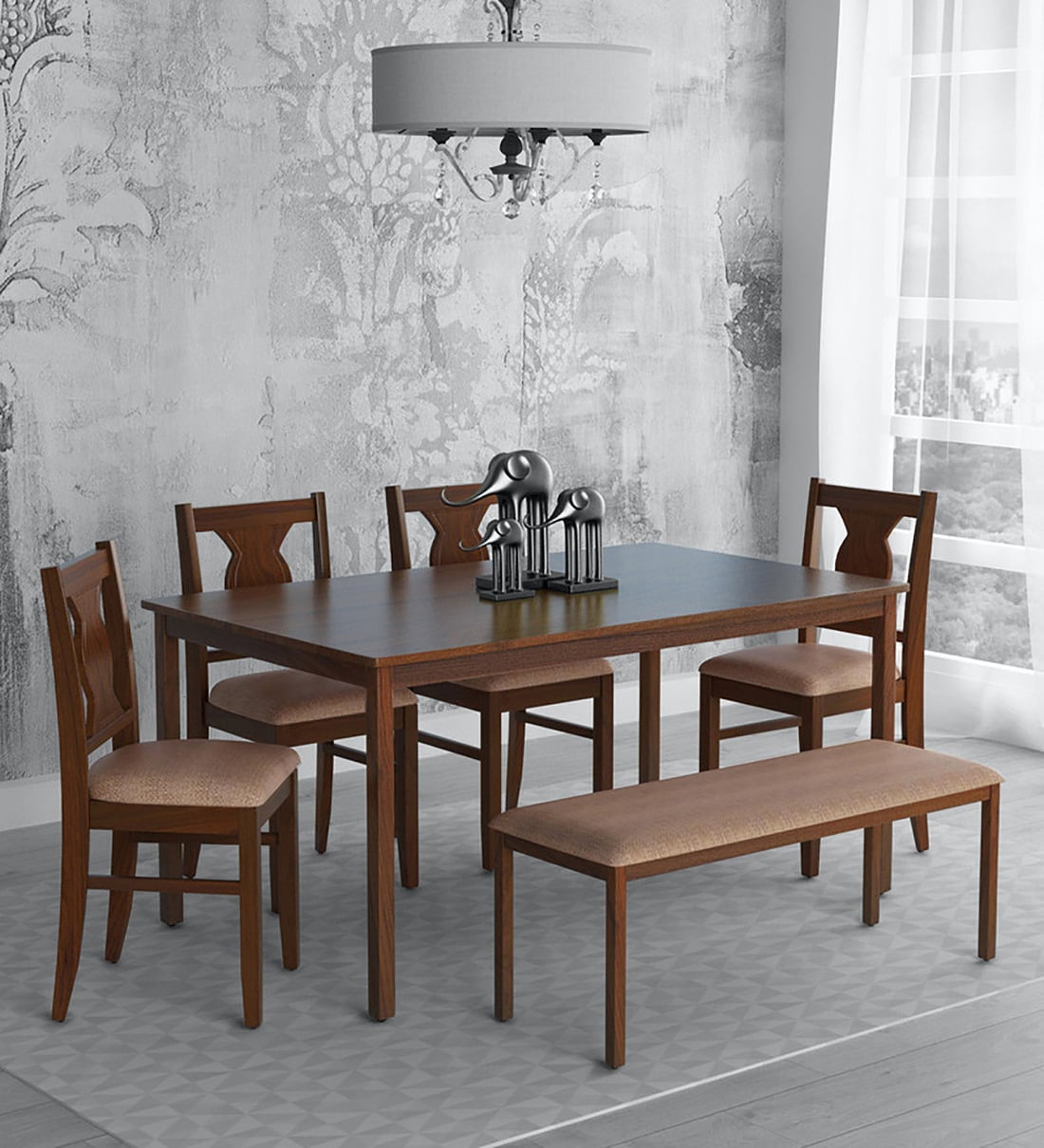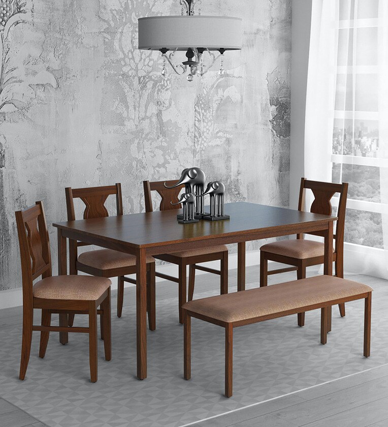 Artois Solid Wood 6 Seater Dining Set in Dark Walnut Finish with Bench