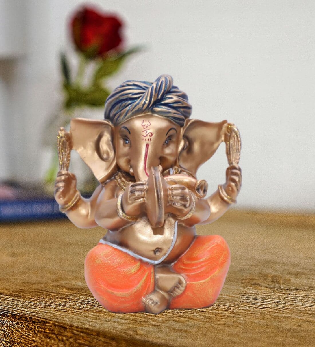 Ashnam Pagadi Manjira Music Ganesha - Gold & Orange, 16cm Casacraft from Pepperfry with Co-brand by Ashnam
