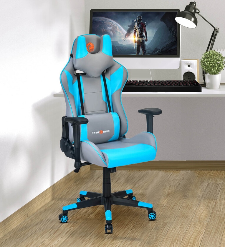 Athena Leatherette Gaming Chair in Grey & Turquoise Colour