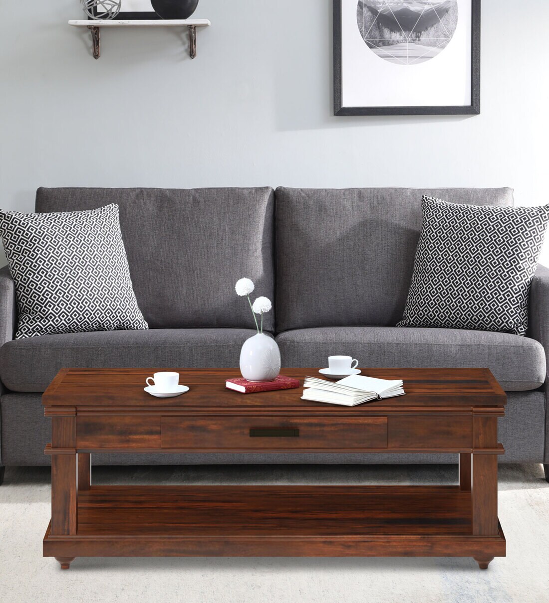 Royaloak Athens American Wooden Center Table in solid wood with unique American design. Made of high grade termite resistant chemically seasoned pure 100% wood. It has drawers at the bottom which can be used for storage. Works well in both contemporary and traditional set-ups.This designer centre table can be used as a coffee table or a side table to beautify your home decor.