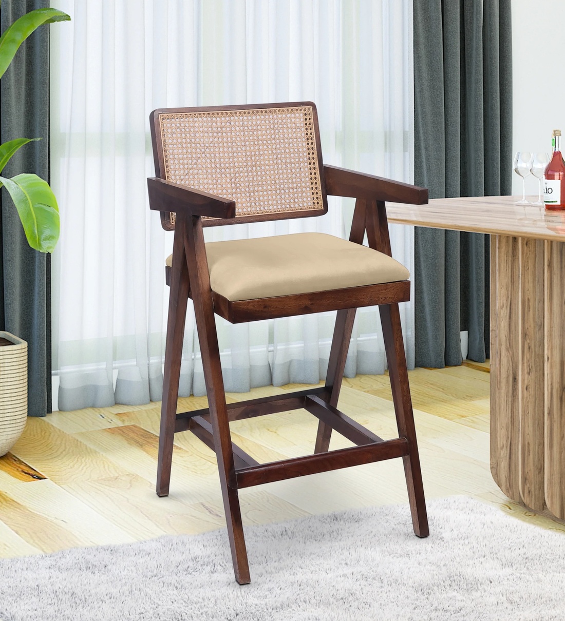 Elevate your home bar or kitchen counter with our stunning Sheesham Wood Bar Chair. Crafted from solid Sheesham wood, this chair exudes warmth and sophistication. The armrests provide comfort and support, while the rattan mesh back adds a touch of natural elegance.