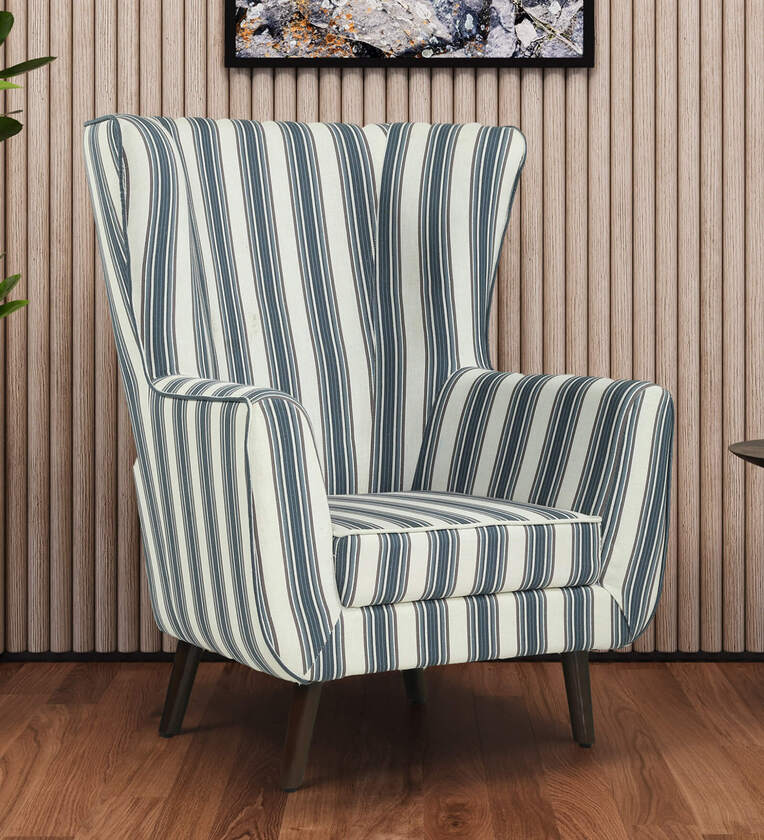 Avery Fabric Wing Chair in White and Green Stripes Colour