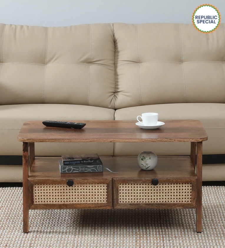 Baarn Mango Wood Large Coffee Table In Rustic Teak Finish