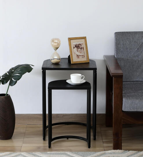 Malek Solid Wood Nest Of Tables In Sandblasted Black Finish (Set Of 2)