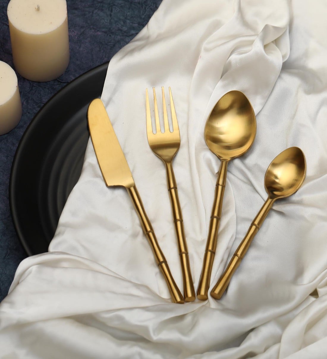Bamboo Elegance Gold Stainless Steel (Set of 24) Cutlery Set